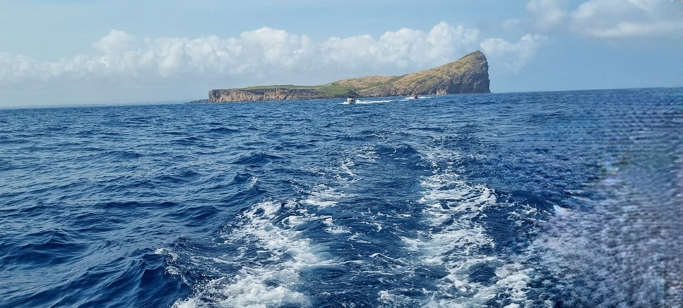 Seewhales and Dolphins off the coast of Mauritius from a speed boat.Your guide will locate where the whales are, and you may have the opportunity to swim and take pictures.