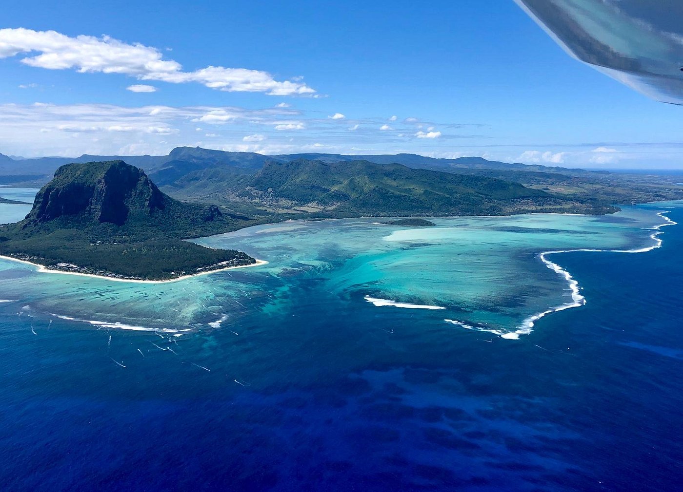 The best way to discover the famous UNDERWATER WATERFALL illusion of Le Morne mountain. Seaplane flights on the south west coats of Mauritius. Explore Mauritius and its beauties differently.