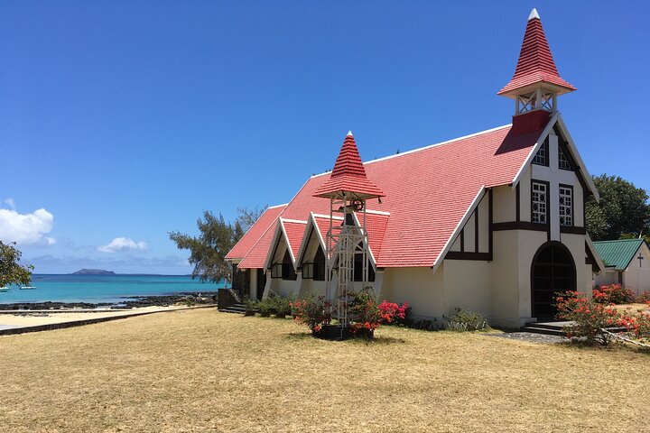 Experience the natural beauty and historical sights of Mauritius when you book this full-day sightseeing excursion. Begin your day with a boat trip to an area known to be abundant with marine life for your chance to see these massive sea turtles as well as other animals. Then, join your private guide for a tour that includes a visit to the Red Church, Pamplemousse Gardens, and Port Louis.